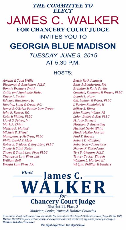 *Thompson Law Firm has contributed to the James Walker campaign and was on the Host Committee for a Meet and Greet for the Candidate.